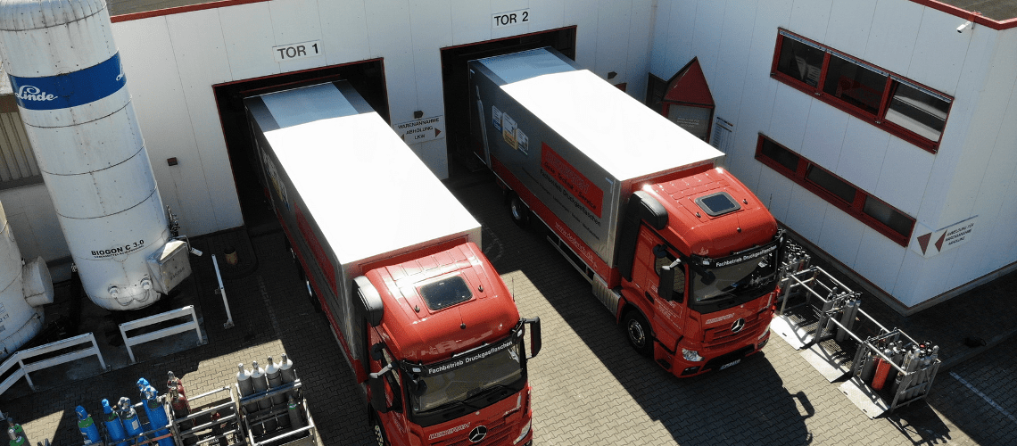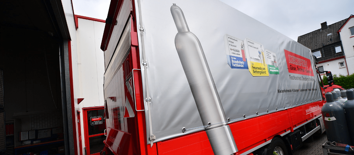 Im Großraum Nordrhein-Westfalen und den angrenzenden Bundesländern fahren wir mit unseren LKW regelmäßige Touren im 14-tägigen Rhythmus, so dass Sie exakt nach 14 Tagen Ihre bearbeiteten Druckgasflaschen zurückerhalten. Unsere Fahrer erfassen Ihre Bearbeitungswünsche schriftlich in einem Reparatur- und Füllauftrag und kennzeichnen Ihre Druckgasflaschen. Alternativ können „Standard-Bearbeitungsrichtlinen“ vereinbart werden. Bei Bedarf stellen wir Ihnen Hilfsmittel in Form von Anhängern und Aufklebern zur Kennzeichnung der Druckgasflaschen zur Verfügung.